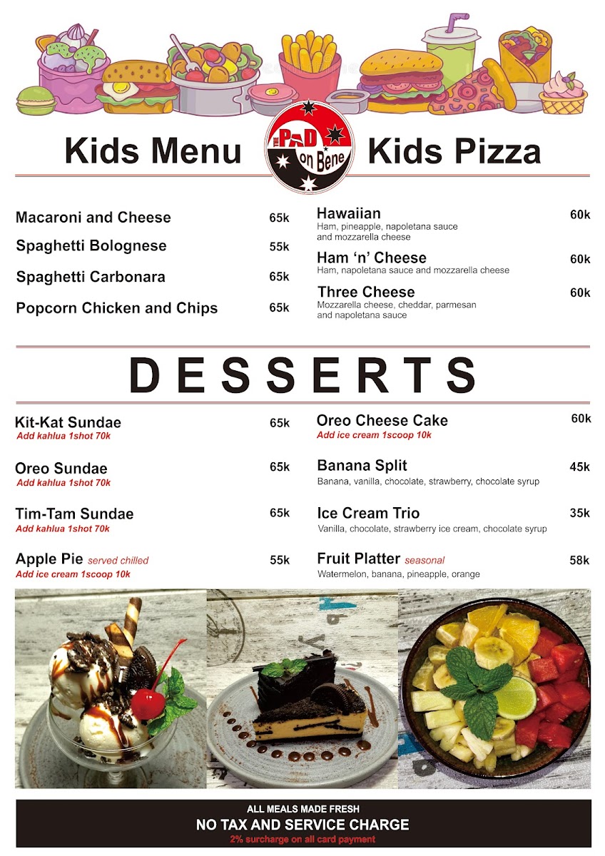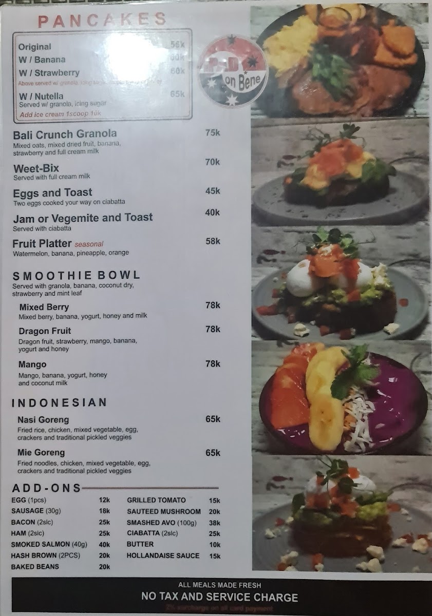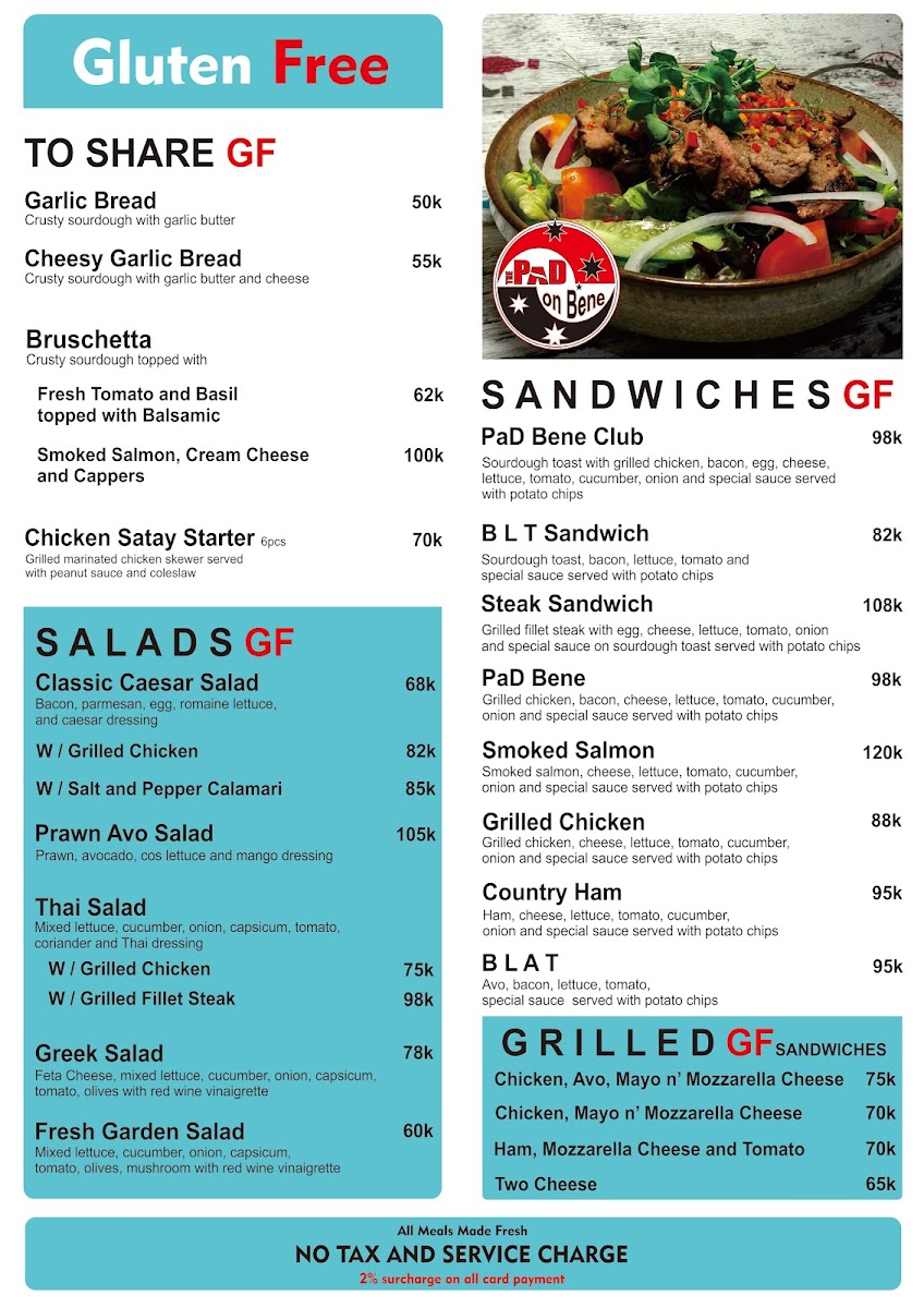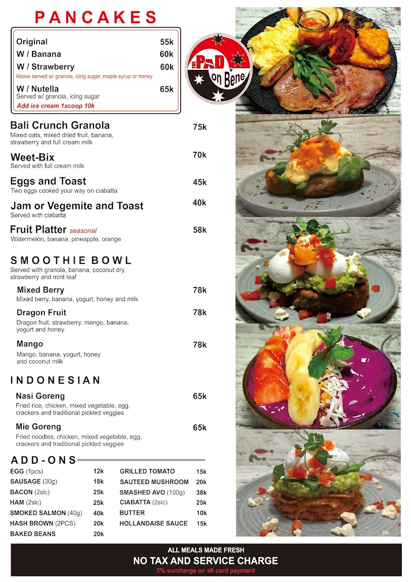 Overall, the menu feels inviting and straightforward, designed to pair naturally with The Pad On Bene’s friendly staff and warm ambiance, making it a place where both locals and visitors can comfortably enjoy their meal or unwind with a drink in hand.